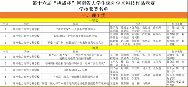 鄭州電力高等?茖W(xué)校在省大學(xué)生課外學(xué)術(shù)科技作品競(jìng)賽中再獲佳績(jī)