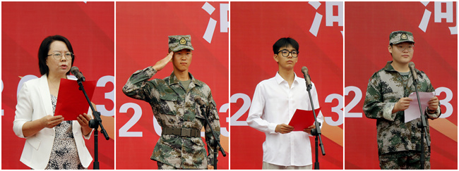 優(yōu)秀教師代表食品與化工學(xué)院副院長王霞教授、施訓(xùn)教官代表葛旭陽同學(xué)、老生代表食品與化工學(xué)院食品營養(yǎng)與健康專業(yè)楊義豪同學(xué)、新生代表建筑工程學(xué)院建筑室內(nèi)設(shè)計(jì)專業(yè)邵奕寧同學(xué)分別進(jìn)行了發(fā)言。