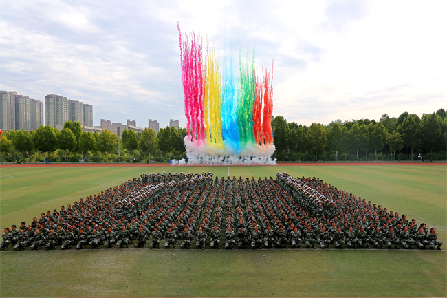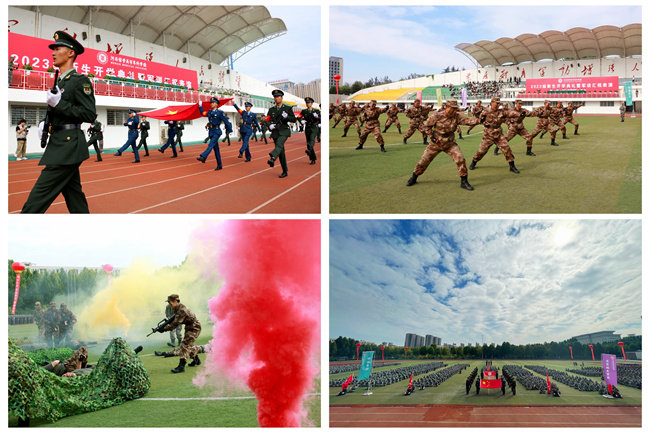 開(kāi)學(xué)典禮前,2023級(jí)新生依次進(jìn)行了分列式和匯報(bào)表演。