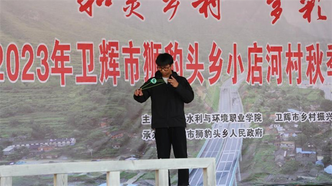中新河南網(wǎng)10月12日電 校地合作,文化搭臺(tái),共譜鄉(xiāng)村振興最強(qiáng)音。10月10日下午,“和美鄉(xiāng)村、多彩生活”2023年衛(wèi)輝市秋季村晚展演活動(dòng)在獅豹頭鄉(xiāng)小店河村舉行。河南水利與環(huán)境職業(yè)學(xué)院黨委委員、工會(huì)主席魏義軍,黨委委員、組織部部長(zhǎng)霍國(guó)義,衛(wèi)輝市市委常委、辦公室主任、太公鎮(zhèn)黨委書記胡國(guó)良,衛(wèi)輝市鄉(xiāng)村振興局黨組書記、局長(zhǎng)馬云杰,衛(wèi)輝市鄉(xiāng)村振興局副局長(zhǎng)王濟(jì)華,衛(wèi)輝市獅豹頭鄉(xiāng)黨委書記李文棟,黨委副書記、鄉(xiāng)長(zhǎng)李英耀,獅豹頭鄉(xiāng)人大主席范運(yùn)啟,衛(wèi)輝市獅豹頭鄉(xiāng)黨委副書記任全武,校團(tuán)委和藝術(shù)教學(xué)部負(fù)責(zé)人、校地結(jié)對(duì)幫扶工作隊(duì)以及獅豹頭鄉(xiāng)小店河村附近村民等現(xiàn)場(chǎng)觀看了此次展演。河南水利與環(huán)境職業(yè)學(xué)院抖音及衛(wèi)輝市融媒體全程實(shí)時(shí)進(jìn)行了直播。