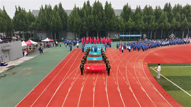 伴著歡快的音樂,國旗護衛(wèi)隊、校旗隊莊嚴肅穆,彩旗隊、花束隊步伐統(tǒng)一進入場內,各學院方隊、留學生代表隊、教職工方隊、裁判員方隊邁著整齊矯健的步伐、喊著鏗鏘有力的口號,精神抖擻、意氣昂揚、闊步前進,依次入場。
