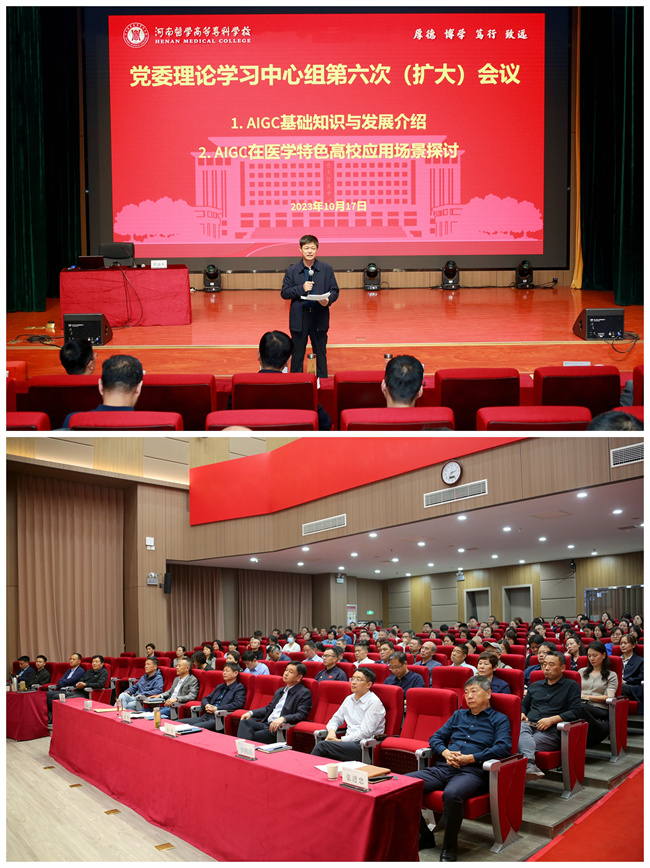 中新河南網10月18日電(黨霖霖 蔡雨) 10月17日下午,河南醫(yī)學高等?茖W校2023年第六次黨委理論學習中心組(擴大)會議在公共藝術中心召開,專題學習教育信息化。校黨委書記花明主持會議并講話,黨委領導班子全體成員出席會議,副高級以上教師和副科級以上干部參加。
