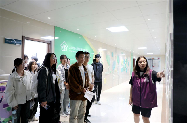 在心聆使者的引導下,同學們有序參觀了大學生心理健康中心,體驗了心理功能室中多樣的設備,了解了心理健康教育中心的咨詢流程及預約方式。