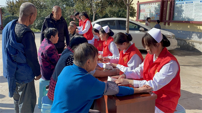 10月21日,醫(yī)學(xué)護(hù)理學(xué)院黨員志愿者服務(wù)隊(duì)來(lái)到坡頭鎮(zhèn)柳玉溝村開(kāi)展愛(ài)心義診志愿服務(wù)活動(dòng);顒(dòng)中,志愿者細(xì)心接待每一位村民,為爺爺奶奶提供血壓測(cè)量、血糖檢測(cè),康復(fù)按摩等服務(wù)。檢測(cè)結(jié)束后,志愿者分別從飲食起居、生活習(xí)慣等方面提供合理化建議及專(zhuān)業(yè)化的健康指導(dǎo),并為居民分發(fā)中藥包和足浴包。由于身體不適,有些居民不能到達(dá)活動(dòng)現(xiàn)場(chǎng),志愿者帶上物品為其進(jìn)行上門(mén)慰問(wèn)并送上禮物與祝福。