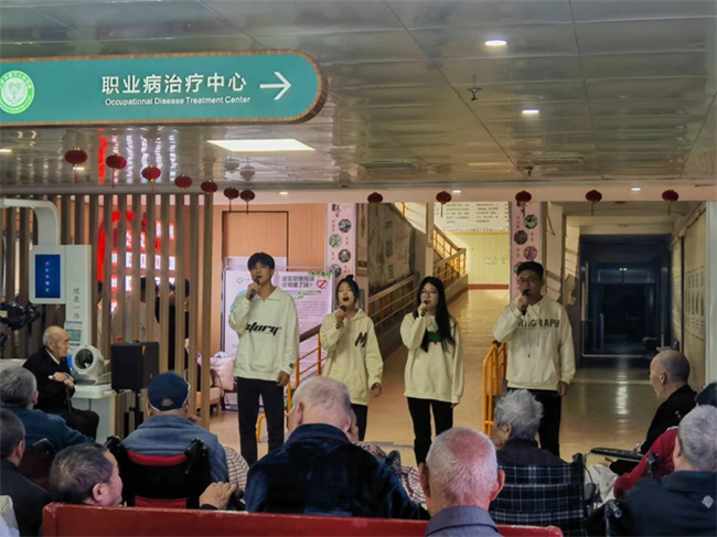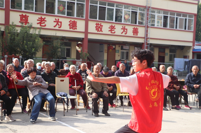 10月19日,濟(jì)源職業(yè)技術(shù)學(xué)院醫(yī)學(xué)護(hù)理學(xué)院黨總支、濟(jì)源市第三人民醫(yī)院和校企合作單位濟(jì)源市康復(fù)家園貿(mào)易有限公司共同在濟(jì)源市第三人民醫(yī)院門(mén)診大廳舉辦“我們的節(jié)日·重陽(yáng)”“九九重陽(yáng)節(jié)·濃濃敬老情”活動(dòng)。志愿者給年邁的老人剪指甲、聊天和按摩等,傾聽(tīng)老人講述過(guò)去的故事。之后,志愿者又開(kāi)展了文藝展演,門(mén)診大廳聚滿了前來(lái)觀看的老人及家屬,活動(dòng)現(xiàn)場(chǎng)精彩紛呈、熱鬧非凡,將溫暖的關(guān)懷注入到每個(gè)老人的心田。