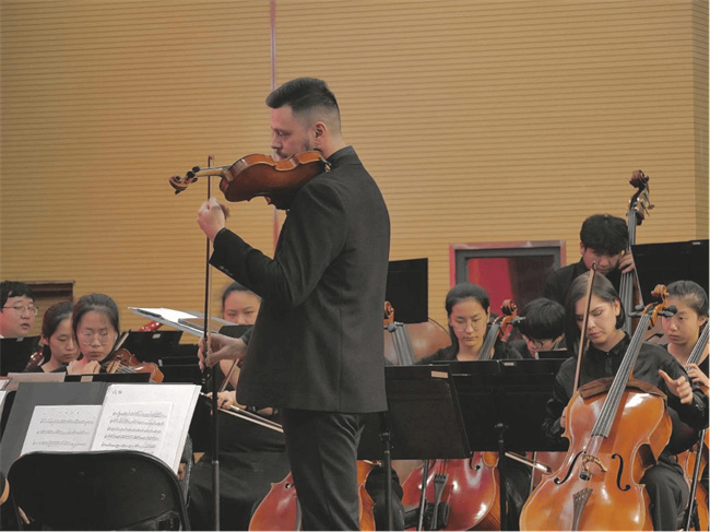 演出期間,Andrew Job Davis (安卓)指揮以“趣味講解+現場演奏”的方式,用激情而獨具魅力的指揮與有趣而簡單易懂的語言,為在場的師生普及了交響樂分類——弦樂組、木管組、銅管組、打擊樂組等,通過講明這些樂器的音區(qū)、音色等特點和現場示范,讓該校師生很好地感受了這些樂器的特點及表現力。