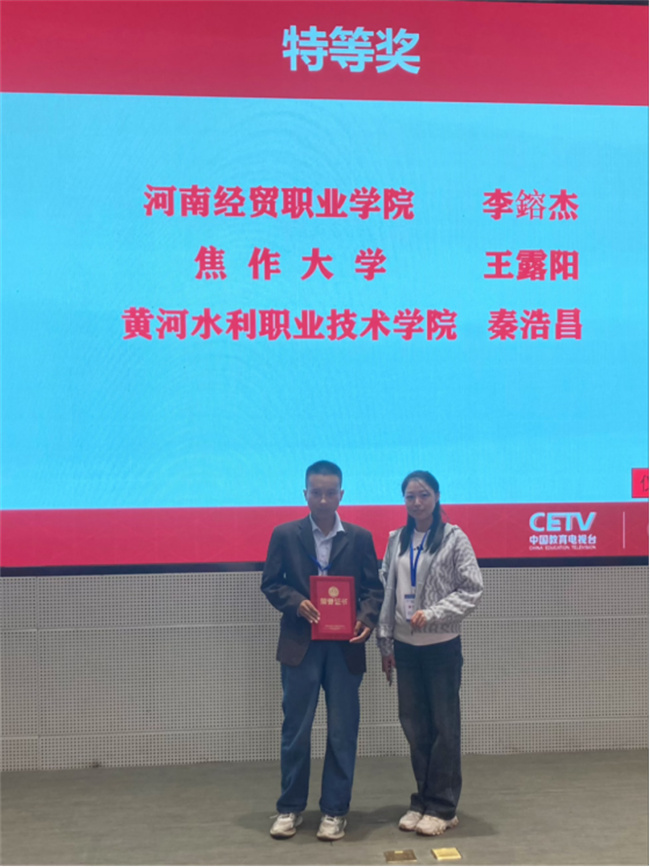 中新河南網(wǎng)11月1日電 “中國教育電視臺·外研社杯”職場英語挑戰(zhàn)賽演講大賽省賽于2023年10月27日——29日在濮陽職業(yè)技術(shù)學(xué)院如期舉行。本次大賽共有來自全省32所不同院校的63名選手參賽。焦作大學(xué)基礎(chǔ)教學(xué)部教師付瑩指導(dǎo)的機電學(xué)院22級智能制造裝備技術(shù)班學(xué)生王露陽在大賽中嶄露頭角,一路晉級,最終榮獲省級特等獎,并入圍國賽。