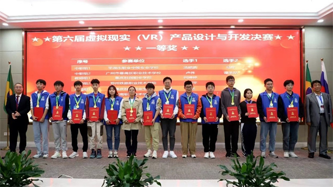 中新河南網(wǎng)11月1日電(董延) 日前,2023“一帶一路”暨金磚國家技能發(fā)展與技術(shù)創(chuàng)新大賽第六屆虛擬現(xiàn)實(shí)(VR)產(chǎn)品設(shè)計(jì)與開發(fā)決賽在重慶舉行。河南職業(yè)技術(shù)學(xué)院智能制造學(xué)院學(xué)生和宇彬、李昱組成的代表隊(duì),同來自國內(nèi)67所職業(yè)院校的88支參賽隊(duì)和國外6支參賽隊(duì)同臺(tái)共競(jìng),經(jīng)過激烈角逐,贏得該賽項(xiàng)高校組一等獎(jiǎng)(第二名),并獲得晉級(jí)國外賽區(qū)的資格。同時(shí),董延、馬澄宇兩位教師分獲“優(yōu)秀指導(dǎo)教師獎(jiǎng)”,河南職院獲“最佳組織獎(jiǎng)”。