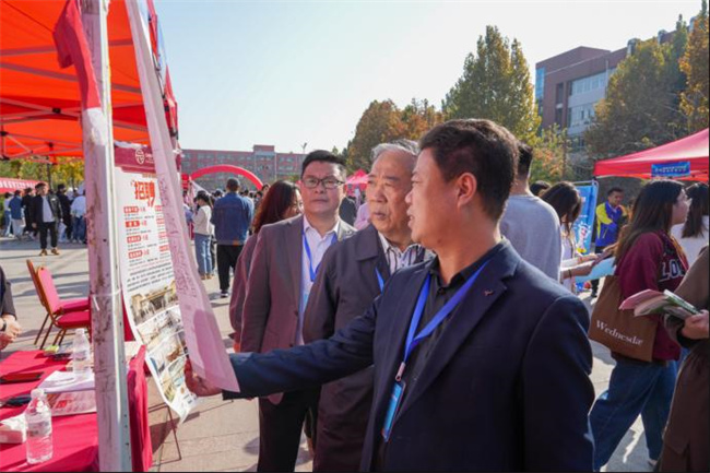 學(xué)校常務(wù)副校長劉衛(wèi)東,副校長崔奎勇,黨委副書記孫玉香,副校長孫文紅,紀(jì)委書記孫玉山等校領(lǐng)導(dǎo)親臨招聘會(huì)現(xiàn)場(chǎng),了解用人單位崗位需求和畢業(yè)生就業(yè)意向,還與雅利安供應(yīng)鏈、童林堡幼兒園等校友單位進(jìn)行充分交流。感謝用人單位長期對(duì)學(xué)校學(xué)生就業(yè)工作的支持,提出校企對(duì)接要以就業(yè)為切入口,加強(qiáng)雙方不同領(lǐng)域和形式的密切合作;鼓勵(lì)畢業(yè)生調(diào)整心態(tài)、找準(zhǔn)定位,主動(dòng)就業(yè)。