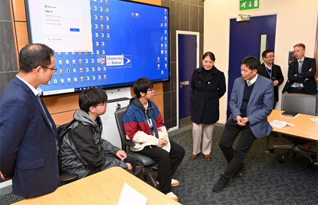 訪問期間,代表團(tuán)在博爾頓大學(xué)國際合作部主任Mr panl starkey的陪同下,實地參觀了計算機創(chuàng)新學(xué)院、機械工程學(xué)院、商學(xué)院的實驗實訓(xùn)室及材料科技研究中心,與學(xué)校專業(yè)教師就專業(yè)培養(yǎng)計劃、課程開設(shè)和科學(xué)研究進(jìn)行了詳細(xì)探討,并與中國留學(xué)生進(jìn)行了廣泛交流。留學(xué)生們談?wù)摿俗约涸诓栴D大學(xué)學(xué)習(xí)和生活體會,表示博爾頓大學(xué)優(yōu)質(zhì)的教學(xué)資源和差別化的教育方法使他們受益匪淺。
