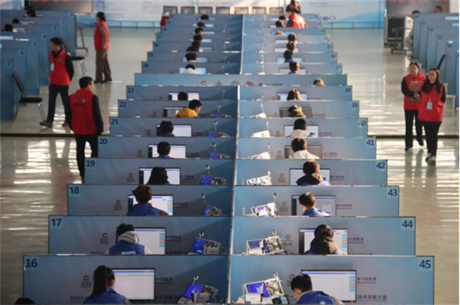 11月13日,大賽開幕式在焦作大學學術報告廳舉行。焦作市政協(xié)副主席、焦作大學校長霍曉麗,金磚國家技能發(fā)展與技術創(chuàng)新大賽組委會國內競賽處主任宋小琴,北京新大陸時代科技有限公司常務副總經理鄧立,賽項專家組組長、咸陽師范學院計算機學院院長張偉,賽項監(jiān)督仲裁長、南京郵電大學博導、南京理工大學博導、南京理工大學紫金學院計算機與人工智能學院院長宗平,賽項裁判長、河南牧業(yè)經濟學院信息工程學院院長連衛(wèi)民,河南工業(yè)和信息化職業(yè)學院院長史先進,焦作師范高等專科學校副校長王紅艷等領導出席。焦作大學副校長林鄧偉主持開幕式。開幕式上,霍曉麗、宋小琴、鄧立分別致辭。裁判員代表和參賽選手代表分別進行了宣誓。
