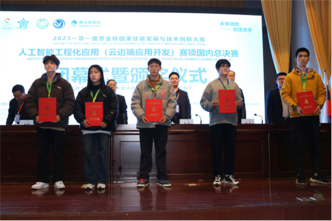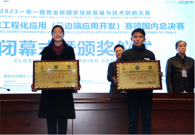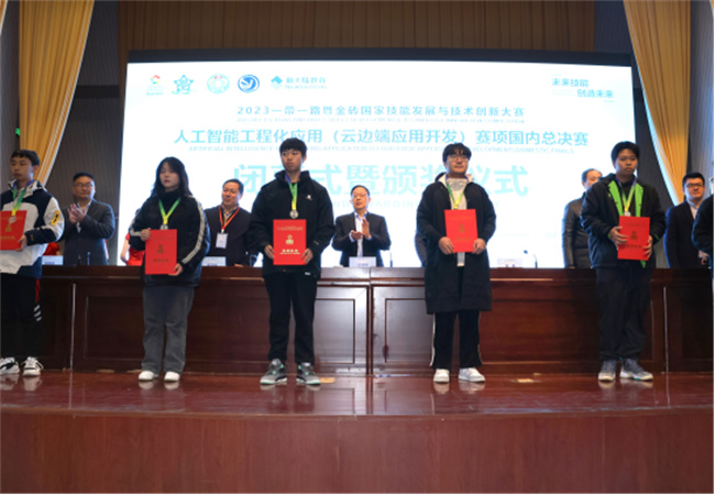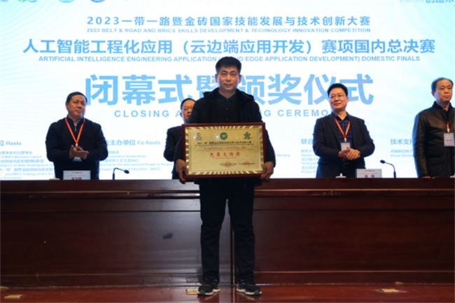 汪詩懷在閉幕式致辭中指出,焦作大學在籌備和舉辦人工智能工程化應用(云邊端應用開發(fā))賽項國內總決賽中,嚴格按照組委會要求,突出科技性、應用性、交流性和選拔性,實現(xiàn)了大賽目標,充分展示了選手技能風采,深入交流了技術經驗,為科學選拔技能人才,有效激勵技能成才提供了平臺。