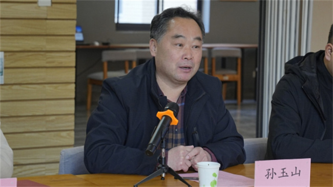 參觀結(jié)束后,山東英才學(xué)院紀(jì)委書記孫玉山、學(xué)生工作處處長(zhǎng)張東飛、創(chuàng)新創(chuàng)業(yè)教育學(xué)院主任王坤麗、武裝部部長(zhǎng)馬先進(jìn)、山東風(fēng)云航空通用有限公司總經(jīng)理寶音圖參加了座談交流會(huì),會(huì)議由孫玉山主持。