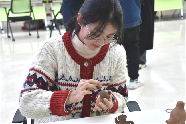 學生現場體驗非遺項目(泥塑)