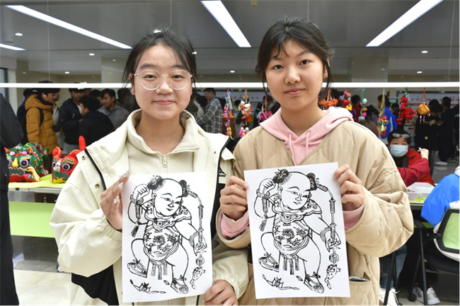 學生現場體驗非遺項目(剪紙)