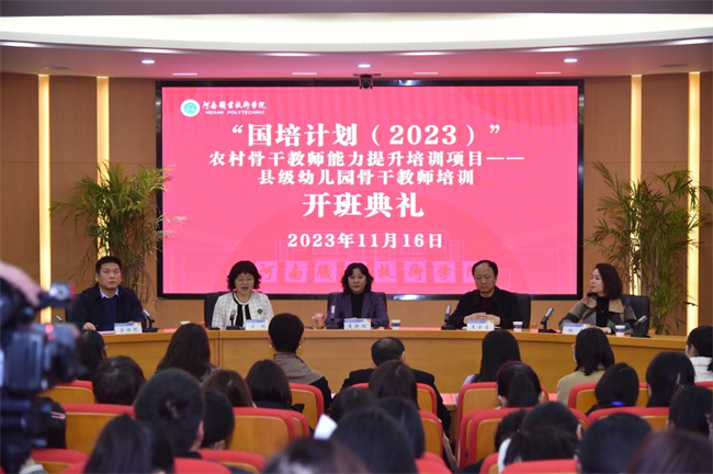 中新河南網(wǎng)11月19日電(蔡晶晶) 11月16日上午,由河南職業(yè)技術(shù)學(xué)院承辦的“國培計(jì)劃(2023)”縣級(jí)幼兒園骨干教師能力提升培訓(xùn)項(xiàng)目培訓(xùn)班開班典禮在行政樓239會(huì)議室舉行。校長夏新顏、副校長肖瓏出席開班典禮。平頂山市教體局教育科,學(xué)校音樂學(xué)院、繼續(xù)教育與培訓(xùn)中心負(fù)責(zé)人及平頂山市、洛陽市、焦作市100名骨干教師參加開班典禮。肖瓏主持開班典禮。