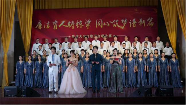 舞臺上,來自全校各單位的10支參賽隊和2支表演隊高唱紅歌,深情禮贊偉大的黨和祖國。各合唱隊精心籌備,用合唱、舞蹈、朗誦、武術等多種形式生動演繹了一堂傳承紅色經(jīng)典、汲取精神力量的“音樂思政課”。演出現(xiàn)場高潮迭起,掌聲不斷,精彩演出帶領觀眾追憶篳路藍縷,回顧崢嶸歲月,真切感受中國共產(chǎn)黨百年奮斗歷程的光輝燦爛,感受中國共產(chǎn)黨為人民服務的不變初心,感受中國共產(chǎn)黨奮進新時代的磅礴力量,進一步增強了對馬克思主義、共產(chǎn)主義的信仰,增強了對實現(xiàn)中華民族偉大復興的信心。