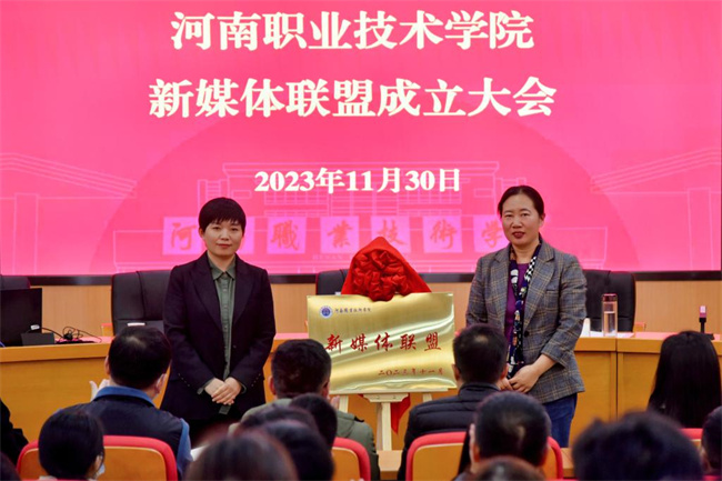 會議宣布了《河南職業(yè)技術(shù)學(xué)院新媒體聯(lián)盟理事長單位、理事單位名單》;表決通過了《河南職業(yè)技術(shù)學(xué)院新媒體聯(lián)盟章程(審議稿)》;田華、楊曉謎為學(xué)校新媒體聯(lián)盟揭牌并分別為聯(lián)盟成員單位授牌;校團(tuán)委和智慧健康學(xué)院新媒體指導(dǎo)老師分別作經(jīng)驗交流發(fā)言。