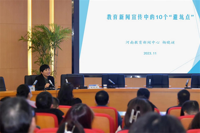 隨后,楊曉謎作了題為《教育新聞宣傳中的10個“避坑點”》的專題講座,她結(jié)合多年新聞宣傳工作經(jīng)驗,分別從新聞中的規(guī)范性表述、新聞報道注意事項、新聞細(xì)節(jié)校對和新聞圖片審核等十個方面,對日常新聞宣傳工作中應(yīng)注意的問題進(jìn)行了詳細(xì)講解。報告既有理論高度,又有思想維度,更有實踐深度,也有很強的現(xiàn)實針對性和指導(dǎo)性,為學(xué)校更好地做好新時期宣傳思想工作,提供了根本遵循、指明了科學(xué)路徑、提供了行動指南。