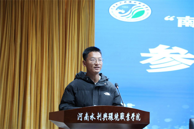 河南水利與環(huán)境職業(yè)學院土木工程系學生穆俊龍作為參賽選手代表宣誓