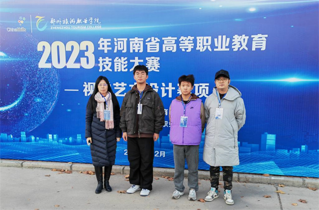 中新河南網(wǎng)12月8日電(王兆陽) 日前,2023年河南省高等職業(yè)教育技能大賽“視覺藝術(shù)設(shè)計(jì)”賽項(xiàng)在鄭州旅游職業(yè)學(xué)院舉辦。河南職業(yè)技術(shù)學(xué)院數(shù)字創(chuàng)意與設(shè)計(jì)學(xué)院王兆陽、張若暉老師指導(dǎo)的馬云濤、陳延照兩位同學(xué),憑借扎實(shí)的技能與豐富的創(chuàng)意,均獲一等獎(jiǎng)。
