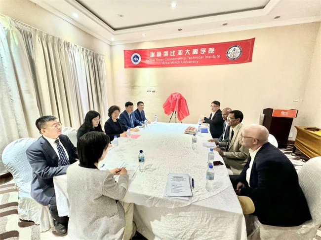 達姆圖·達扎對周保平一行的到訪表示熱烈歡迎,并介紹了阿爾巴名奇大學基本辦學情況。他表示兩校在人才培養(yǎng)、學術(shù)交流、科研合作等方面有著巨大的合作潛力,回顧兩校合作歷程,埃塞俄比亞大禹學院的成立是兩國職業(yè)教育深度合作的成果,通過引進中國優(yōu)質(zhì)的職教資源,加快埃塞俄比亞本土技術(shù)技能人才培養(yǎng)進程,為埃塞俄比亞青年提供了走向國際舞臺的新通道。