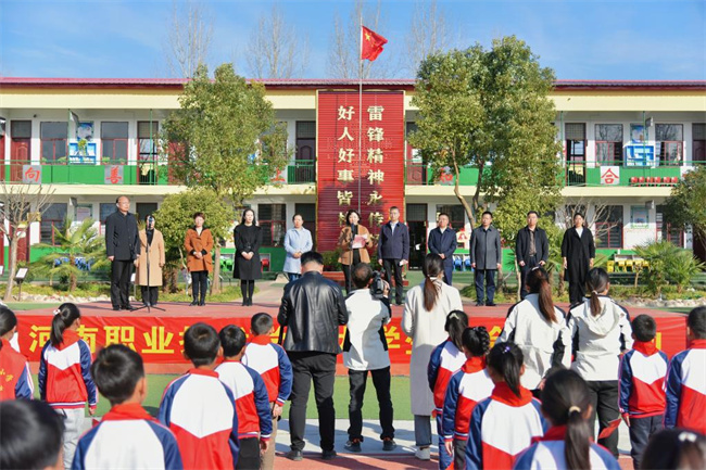 在朱耀環(huán)小學(xué),夏新顏代表學(xué)校捐贈(zèng)了價(jià)值3萬元的文體用品,并寄語全體學(xué)生:一要樹立大志向,勇于逐夢想。從小學(xué)先鋒、長大做先鋒。眼中星光璀璨,向著夢想奔跑,對(duì)未來充滿信心,做好學(xué)生、好孩子,好少年。二要胸懷大世界,學(xué)習(xí)伴成長。保持對(duì)知識(shí)的渴望,對(duì)探索的興趣,勤于思考,多學(xué)多問,努力成長為祖國建設(shè)、家鄉(xiāng)發(fā)展的有用之才、棟梁之材。三要養(yǎng)成好習(xí)慣,鍛煉好身體。加強(qiáng)體育鍛煉,爭做熱愛運(yùn)動(dòng)、陽光自信的少年,努力成為德智體美勞全面發(fā)展的社會(huì)主義建設(shè)者和接班人。李曉勇和朱耀環(huán)小學(xué)校長王艷霞對(duì)學(xué)校捐贈(zèng)慰問表示感謝,并希望學(xué)校依托職業(yè)教育資源助力舞陽教育事業(yè)發(fā)展。期間,學(xué)校國旗護(hù)衛(wèi)隊(duì)舉行了升旗儀式,學(xué)校馬克思主義學(xué)院、團(tuán)委授牌朱耀環(huán)小學(xué)大學(xué)生社會(huì)實(shí)踐基地和送教工作站,儀式在師生激情嘹亮的《讓我們蕩起雙槳》歌聲中結(jié)束。隨后,雙方師生開展了豐富多彩的實(shí)踐活動(dòng)。