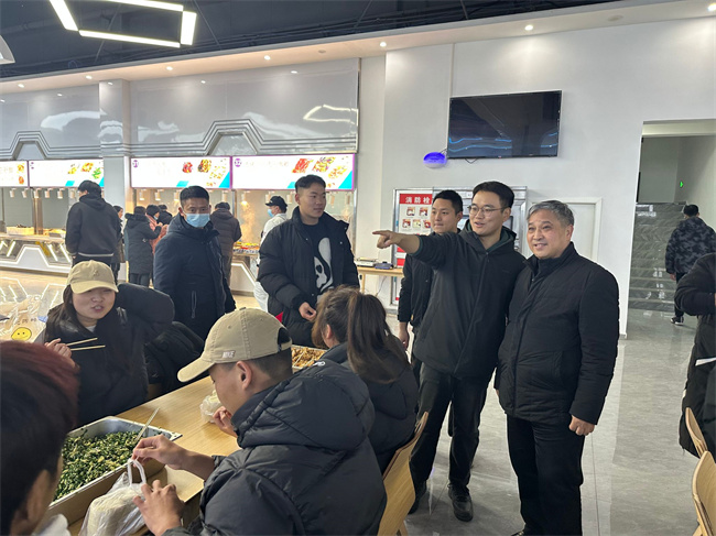 黨委書(shū)記孫振營(yíng)、院長(zhǎng)秦方奇、副院長(zhǎng)許心思等領(lǐng)導(dǎo)來(lái)到餐廳,與師生一起包餃子,過(guò)冬至。有經(jīng)驗(yàn)的師生示范帶頭,方寸的餃子皮在手掌間一張一合一轉(zhuǎn),一個(gè)個(gè)飽滿(mǎn)圓實(shí)的餃子呈現(xiàn)在大家眼前,沒(méi)有經(jīng)驗(yàn)的師生,也在幫帶中,漸漸熟悉技巧,大家一起有說(shuō)有笑,好不熱鬧!