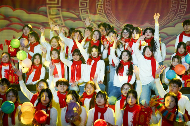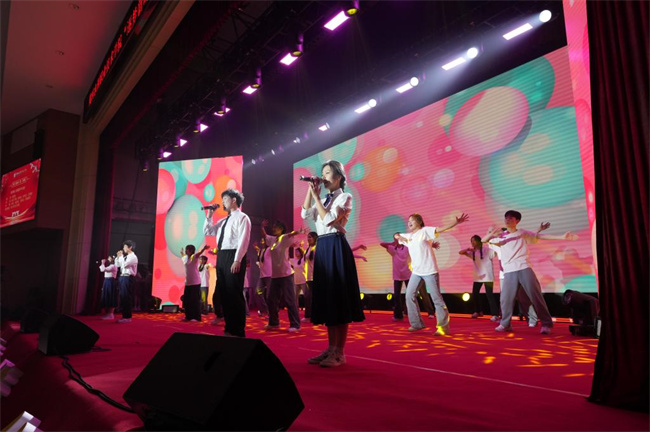 第二篇章,展·風采。青年教師歌曲聯唱,用朝氣蓬勃的姿態(tài),唱響對學校的熱愛和對未來的憧憬。豫劇情景劇《老戲曲 新傳唱》更是別出心裁,著名豫劇家李樹建老師的外籍弟子為我們帶來別樣的戲曲盛宴,將中國優(yōu)秀傳統文化發(fā)揚光大。《旋風少年》展現學校學生健康向上的體魄和堅韌不拔的精神,獨唱《軍營飛來一只百靈》則唱響了中華民族的豪邁與驕傲。