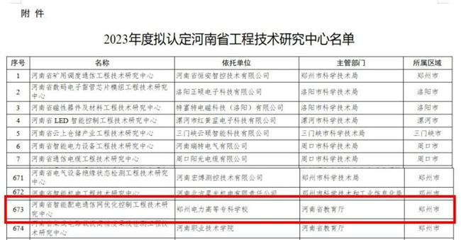 鄭州電力高等專科學(xué)校獲批2023年度河南省工程技術(shù)研究中心