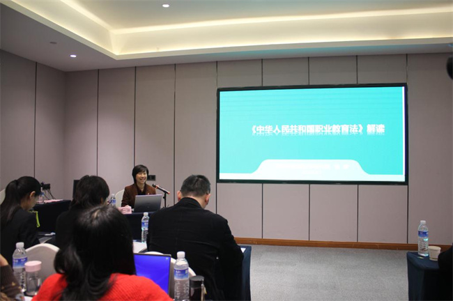 開班儀式結(jié)束后,重慶市教育科學(xué)研究院職成教研究所所長胡彥作《中華人民共和國職業(yè)教育法》專題解讀。胡彥從教育四要素和教育產(chǎn)出成果闡釋了職業(yè)教育高質(zhì)量發(fā)展的核心與要素,從新職業(yè)教育法頒布的意義、職業(yè)教育面臨的挑戰(zhàn)和在新發(fā)展階段下職業(yè)教育如何發(fā)揮主體作用等方面進(jìn)行了解讀與分析。