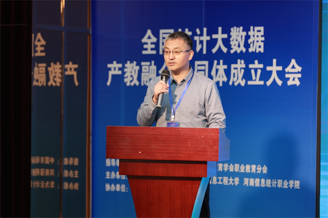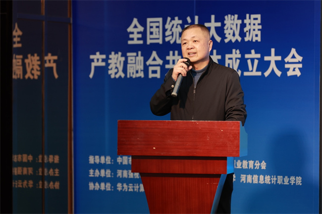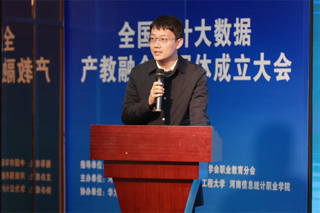梁景予在致辭中表示,共同體成立之后學(xué)校將從以下幾方面進(jìn)行探索:一是緊跟數(shù)據(jù)產(chǎn)業(yè)、吃透用好相關(guān)政策、充分利用政府提供的各項支持,確保共同體的發(fā)展與國家戰(zhàn)略相一致,推動共同體的健康發(fā)展;二是深化校企合作,豐富產(chǎn)教融合辦學(xué)形態(tài),拓展產(chǎn)教融合培養(yǎng)內(nèi)容;三是要加強(qiáng)資源共享,促進(jìn)共同體成員之間的信息交流和技術(shù)合作,共享優(yōu)質(zhì)教育資源,強(qiáng)化實訓(xùn)基地建設(shè),提升整體教育教學(xué)水平。他指出河南信息統(tǒng)計職業(yè)學(xué)院作為發(fā)起單位,成立“全國統(tǒng)計大數(shù)據(jù)產(chǎn)教融合共同體”,致力于推動教育鏈、人才鏈、創(chuàng)新鏈、產(chǎn)業(yè)鏈深度融合,在面向新征程、新使命的過程中,發(fā)揮學(xué)科綜合優(yōu)勢,與各成員單位齊心協(xié)力探索“平臺共建、人才共育、研發(fā)共促、成果共享”的合作新范式。
