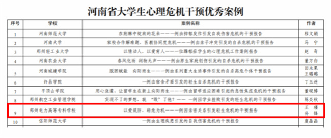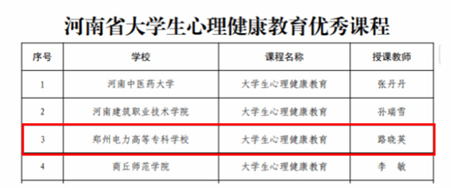 鄭州電力高等專(zhuān)科學(xué)校心理健康教育工作獲多項(xiàng)榮譽(yù)