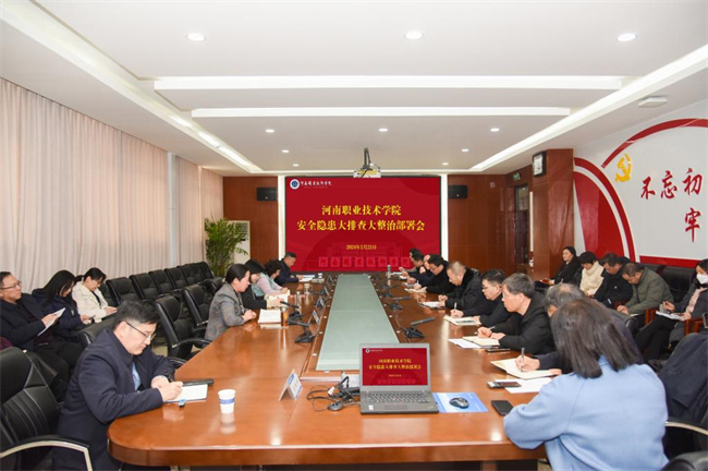 中新河南網(wǎng)1月24日電(王宜賓) 1月21日下午,河南職業(yè)技術(shù)學(xué)院安全隱患大排查大整治部署會(huì)在行政樓332會(huì)議室召開(kāi)。校黨委書(shū)記李桂貞,校長(zhǎng)夏新顏,校黨委副書(shū)記、紀(jì)委書(shū)記田華,副校長(zhǎng)李玉峰和任楓軒出席會(huì)議。黨政辦、宣傳部、學(xué)工部、后勤處、保衛(wèi)處、基本建設(shè)處、綜合實(shí)訓(xùn)中心及各二級(jí)學(xué)院黨政主要負(fù)責(zé)人參加會(huì)議。會(huì)議由田華主持。