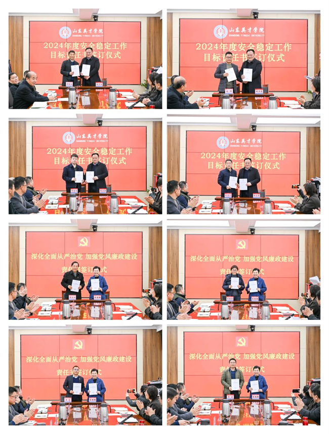 黨委書記朱曉梅、常務副校長劉衛(wèi)東與各單位部門簽訂《2024年度安全穩(wěn)定目標責任書》《深化全面從嚴治黨加強黨風廉政建設責任書》。