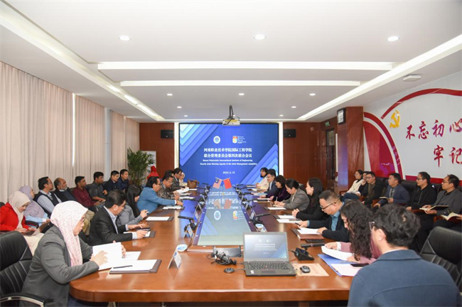 中新河南網(wǎng)3月17日電(師琳琳) 3月15日上午,馬來西亞國民大學(xué)國際教育部主任Dr. MUHAMMAD BIN HUSSIN一行8人到河南職業(yè)技術(shù)學(xué)院考察訪問,雙方組織召開國際工程學(xué)院聯(lián)合管理委員會(huì)第四次工作會(huì)議。校長夏新顏,校黨委副書記、紀(jì)委書記田華,副校長任楓軒出席會(huì)議。國際合作交流處、智能制造學(xué)院、電子與物聯(lián)網(wǎng)學(xué)院、現(xiàn)代信息技術(shù)學(xué)院相關(guān)人員及目前來校擔(dān)任教學(xué)任務(wù)的國民大學(xué)教師參會(huì)。會(huì)議由任楓軒主持。