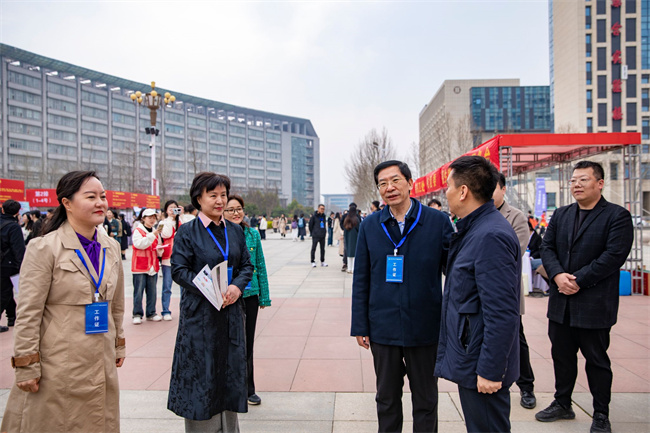 中新河南網(wǎng)3月23日電(趙云 郭寅虎 陸雪嫻) 3月22日,河南中醫(yī)藥大學2024年畢業(yè)生春季校園雙選會在學校龍子湖校區(qū)五星廣場順利舉行。校長王耀獻、校黨委委員、副校長田力出席雙選會現(xiàn)場,詳細了解招聘會的組織情況并與用人單位、畢業(yè)生進行了親切交流。學校相關(guān)職能部門及各學院、書院負責人、輔導員全程參與,5000余名畢業(yè)生參加了雙選會。