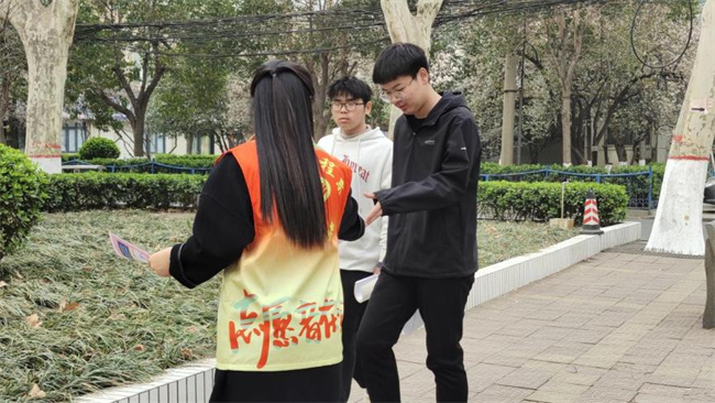 校園宣傳。開展保護水資源線上答題活動,通過知識競賽的形式,讓廣大學(xué)生了解、識記、拓寬水資源保護相關(guān)知識。在校園內(nèi)懸掛宣傳橫幅、向師生分發(fā)水資源保護宣傳冊、設(shè)置簽名墻等,營造良好校園氛圍,吸引廣大師生關(guān)注參與中國水周宣傳主題活動。