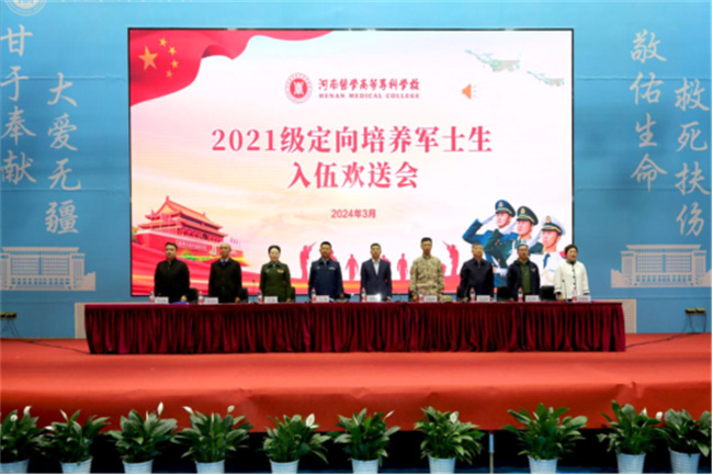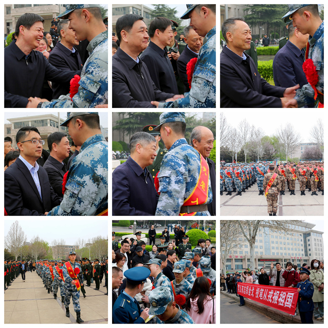 3月27日,2021級入伍軍士生在圖文信息中心前廣場集合出征,校領(lǐng)導(dǎo)花明、孫韜、王傳中、李鵬濤、張進忠以及護理學(xué)院師生為他們送行。2022級、2023級軍士生齊唱《強軍戰(zhàn)歌》和《當祖國召喚的時候》,為2021級學(xué)長送上最真摯的祝福。