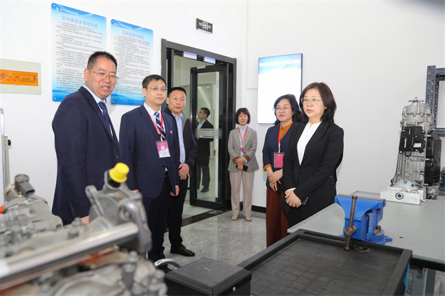 毛杰一行實(shí)地調(diào)研了鄭州職業(yè)技術(shù)學(xué)院汽車綜合實(shí)訓(xùn)中心、工業(yè)機(jī)器人工程技術(shù)中心、超硬材料及制品工程技術(shù)中心、華為ICT產(chǎn)教融合基地、虛擬現(xiàn)實(shí)工程技術(shù)中心、生命健康研究院等國家和省市實(shí)訓(xùn)科研平臺(tái),聽取了學(xué)校在專業(yè)建設(shè)、實(shí)習(xí)實(shí)訓(xùn)、科教融匯、成果轉(zhuǎn)化和服務(wù)地方產(chǎn)業(yè)等方面的情況匯報(bào)。在虛擬現(xiàn)實(shí)工程技術(shù)中心,毛廳長(zhǎng)現(xiàn)場(chǎng)體驗(yàn)了虛擬仿真實(shí)訓(xùn)系統(tǒng)。