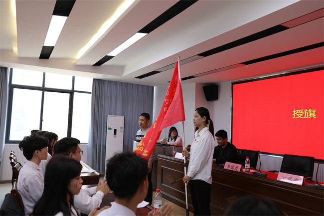 校團(tuán)委書記李瑞龍為“青馬工程”培養(yǎng)班授旗。