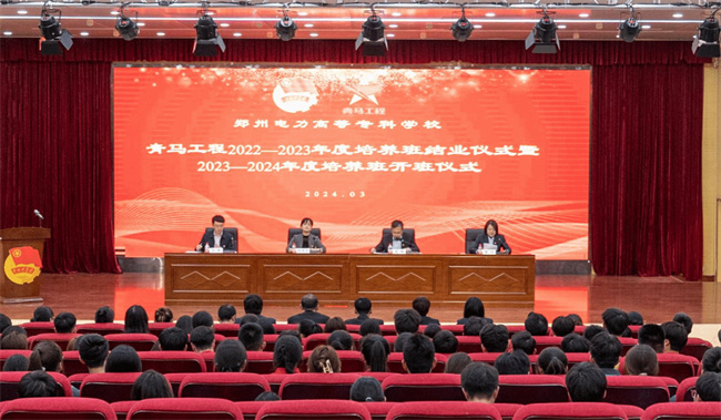 儀式在莊嚴(yán)的國(guó)歌聲中拉開序幕,黨委組織部部長(zhǎng)趙峰、黨委宣傳部部長(zhǎng)彭博分別宣讀了2022-2023年度培養(yǎng)班結(jié)業(yè)學(xué)員、優(yōu)秀學(xué)員名單以及2023-2024年度培養(yǎng)班新學(xué)員名單,鄭州電力高等專科學(xué)校“青馬工程”培養(yǎng)班指導(dǎo)教師黃克非、院級(jí)“青馬工程”培養(yǎng)班班主任代表汪宇、2022-2023年度培養(yǎng)班結(jié)業(yè)優(yōu)秀學(xué)員代表劉子碩分別上臺(tái)發(fā)言。與會(huì)領(lǐng)導(dǎo)為優(yōu)秀學(xué)員代表頒發(fā)了榮譽(yù)證書和結(jié)業(yè)紀(jì)念品。