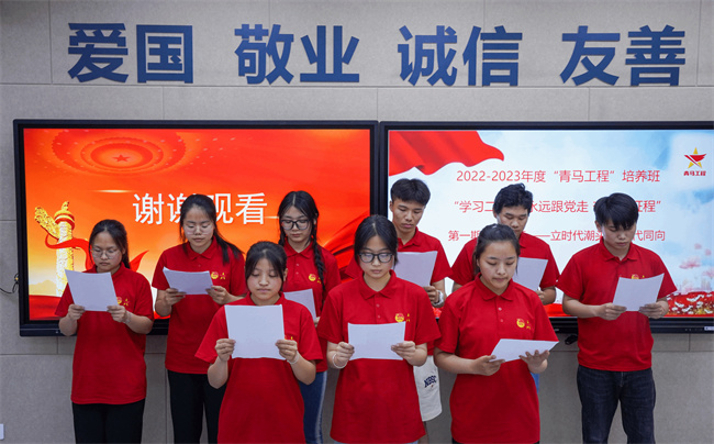 最后,高級(jí)管理師周明霞代表鄭州電力高等?茖W(xué)校黨委講話。她提出,青馬工程是加強(qiáng)和改進(jìn)鄭州電力高等?茖W(xué)校共青團(tuán)思想政治引領(lǐng)的重要舉措,也是青年學(xué)生學(xué)習(xí)馬克思主義的重要途徑。鄭州電力高等專科學(xué)校黨委高度重視青馬工程,認(rèn)真貫徹落實(shí)團(tuán)中央關(guān)于深入實(shí)施青年馬克思主義者培養(yǎng)工程的具體要求,取得了扎實(shí)的成績(jī)。希望全體學(xué)員堅(jiān)定理想信念補(bǔ)足精神之鈣、強(qiáng)化思想引領(lǐng)凝聚奮進(jìn)力量、發(fā)揮模范作用傳播真理力量,充分發(fā)揮“點(diǎn)亮一盞燈、照亮一大片”的模范帶頭作用,努力成長(zhǎng)為具有忠誠(chéng)的政治品格、濃厚的家國(guó)情懷、扎實(shí)的理論功底、突出的能力素質(zhì)的青年馬克思主義者。