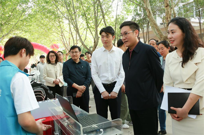 活動期間,校黨委書記厲勵,黨委副書記、紀(jì)委書記田華,副校長任楓軒與宣傳部、團(tuán)委、學(xué)工部、教務(wù)處、科技開發(fā)處、創(chuàng)業(yè)學(xué)院等部門負(fù)責(zé)人一起參加現(xiàn)場巡展,并在“我們的河職我代言,爭做文明河職人 ”簽名墻上簽下自己的姓名,倡議全體師生從我做起,從身邊做起,從點滴做起,爭做文明河職人,攜手共建文明校園。隨后,厲勵一行走到每個展臺前與參展同學(xué)進(jìn)行親切交流,他希望廣大團(tuán)員青年一要堅守愛黨初心,將個人的理想追求融入黨和人民的事業(yè)之中,感黨恩,聽黨話,跟黨走,切實擔(dān)負(fù)起黨和人民賦予的歷史重任,爭做有理想、敢擔(dān)當(dāng)、能吃苦、肯奮斗的時代新人;二要擦亮愛國主義鮮亮底色,將激昂的青春夢想融入偉大的中國夢中,將小我融入大我,以行動詮釋愛國之情,用青春書寫報國之志,爭做德技并修的能工巧匠、大國工匠;三要牢樹“愛校榮校,為校爭光”理念,增強主人翁意識,為學(xué)校建設(shè)發(fā)展建言獻(xiàn)策,貢獻(xiàn)智慧和力量,在創(chuàng)新創(chuàng)業(yè)中增長才干、銳意創(chuàng)新、敢試敢闖、不懼挑戰(zhàn),在“挑戰(zhàn)杯”的舞臺上展現(xiàn)青春風(fēng)采,爭做開拓新領(lǐng)域的先鋒,創(chuàng)造新業(yè)態(tài)的先鋒,探索新模式的先鋒,讓創(chuàng)新成為青春遠(yuǎn)航的動力,讓創(chuàng)業(yè)成為青春搏擊的能量,讓青春年華在為國家、為人民的奉獻(xiàn)中煥發(fā)出絢麗光彩。