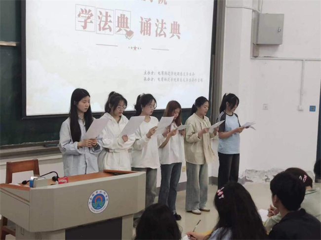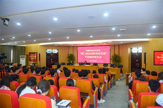 活動(dòng)周期間,學(xué)校積極創(chuàng)新法治教育宣傳形式,以“一日一活動(dòng)”為主線(xiàn),精心打造了“法律診所”“法治長(zhǎng)廊”“普法電波”“學(xué)法誦典”“法治講堂”等富有河職特色的法治活動(dòng),奏響河職普法宣傳最強(qiáng)音。“法律診所,解你所惑”,黨政辦公室聯(lián)合河南薈智源策律師事務(wù)所將法律診所開(kāi)進(jìn)校園,“問(wèn)診”法律疑難、普及法律知識(shí),切實(shí)增強(qiáng)了全校師生的法治意識(shí)和運(yùn)用法律知識(shí)解決實(shí)際問(wèn)題的能力;“法治長(zhǎng)廊,潤(rùn)心育人”,黨委宣傳部認(rèn)真踐行校園法治文化陣地建設(shè),利用條幅、海報(bào)、宣傳欄等傳播載體,結(jié)合通俗易懂的法律圖文,在校園內(nèi)搭設(shè)法治文化長(zhǎng)廊,讓師生近距離學(xué)習(xí)法律知識(shí),接受法治文化熏陶,為校園再添靚麗的法治風(fēng)景線(xiàn);“普法電波,聲聲不息”,團(tuán)委通過(guò)校園廣播站積極傳播法治聲音,分享消防安全、網(wǎng)絡(luò)安全、道路交通安全、心理健康、防范電信詐騙等與師生息息相關(guān)的法律法規(guī)及案例,讓“普法小喇叭”縈繞在師生耳邊心間;“學(xué)法誦典,典亮生活”,黨委學(xué)生工作部重點(diǎn)圍繞《民法典》舉辦“學(xué)法典、誦法典”主題朗誦活動(dòng),組織學(xué)生以多種形式誦讀法律條文,并結(jié)合校園霸凌、緊急救助、“校園貸”、高空拋物等熱點(diǎn)時(shí)事,以案釋法、以典說(shuō)法,讓《民法典》這部“社會(huì)生活百科全書(shū)”真正走到學(xué)生身邊、走進(jìn)學(xué)生心里;“法治講堂,強(qiáng)基鑄魂”,馬克思主義學(xué)院邀請(qǐng)河南警察學(xué)院張國(guó)琦教授等法學(xué)專(zhuān)家,面向廣大師生作法治專(zhuān)題報(bào)告,與會(huì)師生通過(guò)聆聽(tīng)翔實(shí)生動(dòng)、貼合校園實(shí)際的法律講座,讓法治理念在心中生根發(fā)芽。