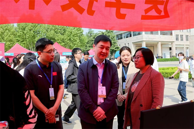 孫韜與用人單位代表深入交流,了解企業(yè)用人需求及行業(yè)發(fā)展方向,期望校企深度合作,實現(xiàn)校企協(xié)同育人目標。同時鼓勵現(xiàn)場畢業(yè)生要將個人理想融入國家發(fā)展,樹立正確的職業(yè)觀、就業(yè)觀、擇業(yè)觀,從個人實際出發(fā),合理確定目標,抓住求職黃金期,爭取盡早高質(zhì)量就業(yè)。