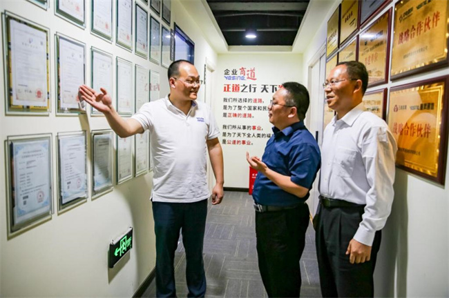 湖南遙昇通信技術有限公司董事長王杰林對鞠晨曦一行的到來表示熱烈歡迎,并詳細介紹了公司的團隊成員、核心技術、項目成果和未來發(fā)展規(guī)劃。鞠晨曦對湖南遙昇通信技術有限公司在算法研究和開發(fā)方面取得的成就給予高度評價,并就如何在學校與校友企業(yè)之間構建“招生—培養(yǎng)—就業(yè)—共建”全鏈條聯動機制提出新的思路。陳繼鋒提出,信息與機電工程學院可以與湖南遙昇通信技術有限公司在課題研究、技術創(chuàng)新、成果轉化、場景應用、學科競賽等方面展開深度合作。