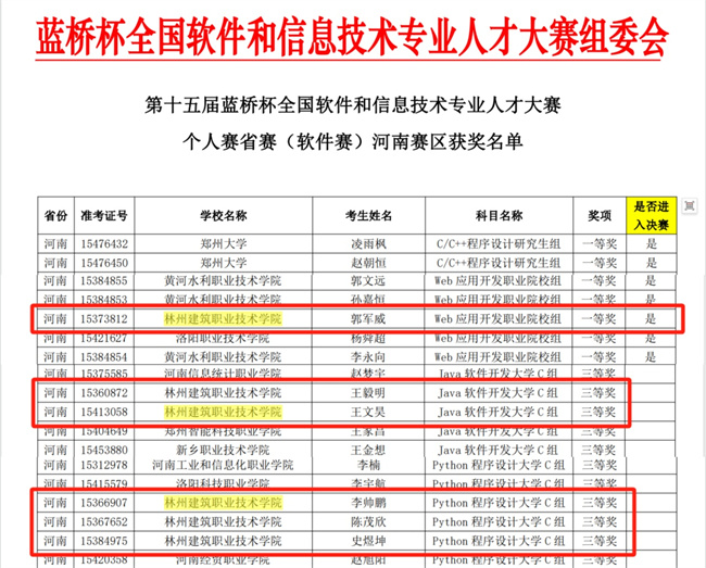 在本屆“藍(lán)橋杯”競(jìng)賽中,人工智能系代表林州建筑職業(yè)技術(shù)學(xué)院成功申請(qǐng)為“藍(lán)橋杯”大賽河南省賽的賽點(diǎn)學(xué)校,首次承擔(dān)國(guó)內(nèi)榜單賽事的賽點(diǎn)工作,林州建院圓滿完成并取得優(yōu)異成績(jī),為學(xué)校承擔(dān)國(guó)家重大比賽賽點(diǎn)任務(wù)積累了經(jīng)驗(yàn),為學(xué)校信息技術(shù)類人才的培養(yǎng)提供開放平臺(tái),提升信息技術(shù)類畢業(yè)生的就業(yè)競(jìng)爭(zhēng)力。學(xué)校通過賽事經(jīng)驗(yàn)的累積反哺了軟件技術(shù)、計(jì)算機(jī)應(yīng)用技術(shù)、大數(shù)據(jù)技術(shù)等專業(yè)的學(xué)科建設(shè),同時(shí)有助于堅(jiān)持教育創(chuàng)新,深化教育改革,提高學(xué)術(shù)研究水平。