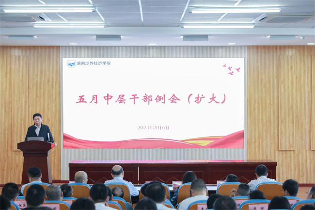 中新河南網(wǎng)5月10日電(戴琪 常燦) 5月6日下午,湖南涉外經(jīng)濟(jì)學(xué)院召開5月中層干部會(huì)議(擴(kuò)大)。校長(zhǎng)王耀中,校黨委書記楊念,副校長(zhǎng)陳斌、岳艷麗、鞠晨曦、汪東明、高金定,校長(zhǎng)助理王琦出席會(huì)議。會(huì)議由副校長(zhǎng)陳斌主持。