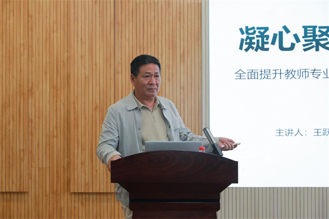 音樂學(xué)院院長(zhǎng)王躍輝以《全面提升教師專業(yè)技能 確保“育人育才”工程走深走實(shí)》為題,詳細(xì)介紹了該院每年對(duì)青年教師專業(yè)技能進(jìn)行考核的具體舉措,以及對(duì)提高青年教師教育教學(xué)能力、提升教育教學(xué)質(zhì)量的重要推動(dòng)作用。